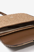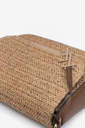 Mala castanha em palha entrançada com alça ajustável e fecho magnético discreto.